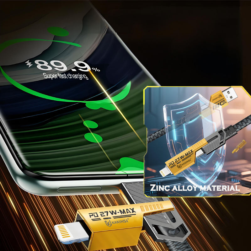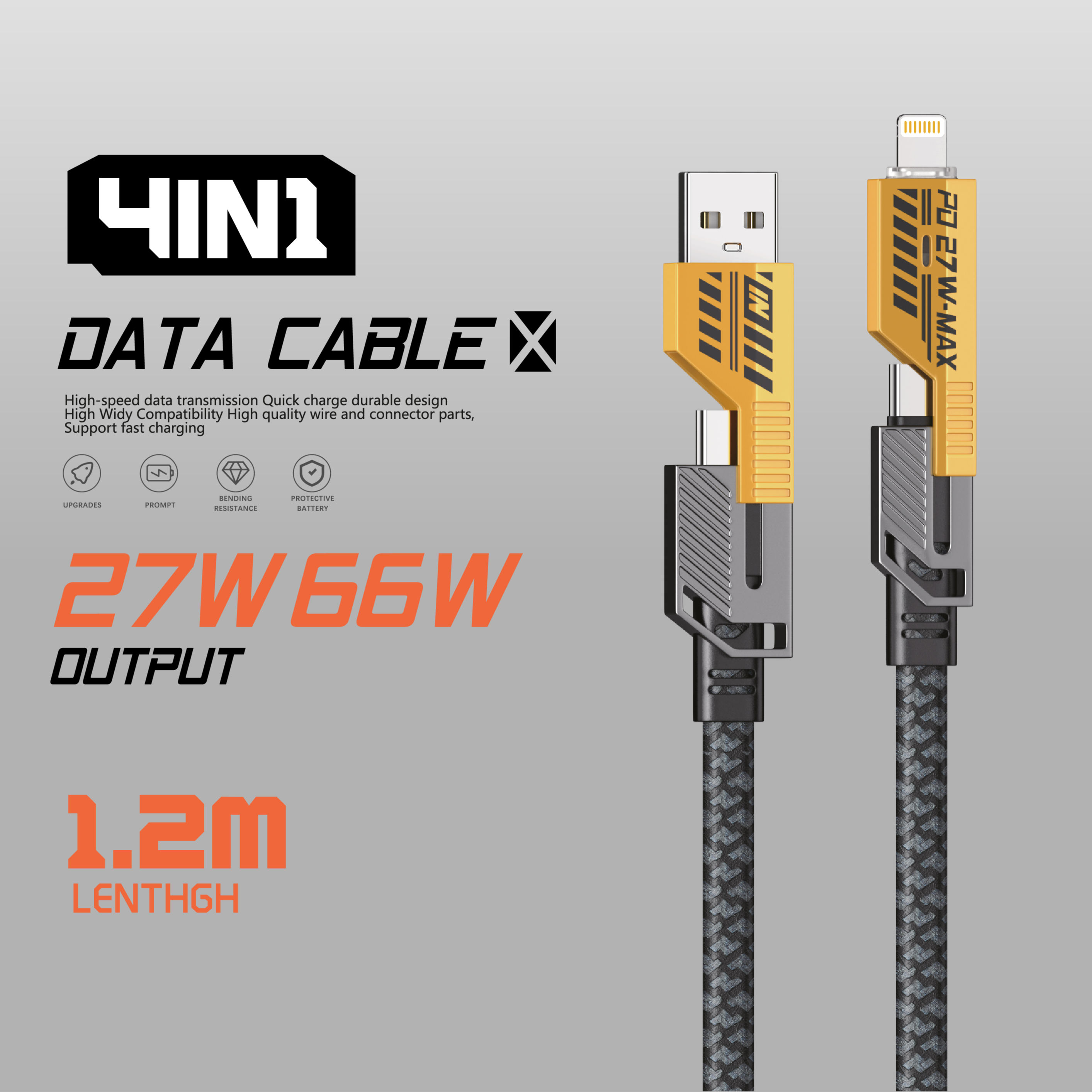4 in 1 Data Cable 1.2M 27W/66W 5A Fast Charging Zinc Alloy Nylon for iPhone for Mobile Phones