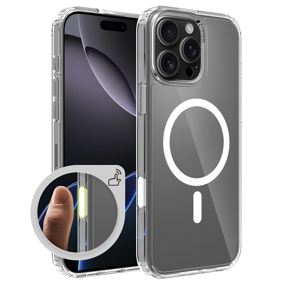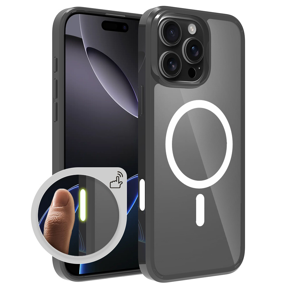 Apple 16promax magnetic 2-in-1 phone case with smart buttons and transparent iPhone case