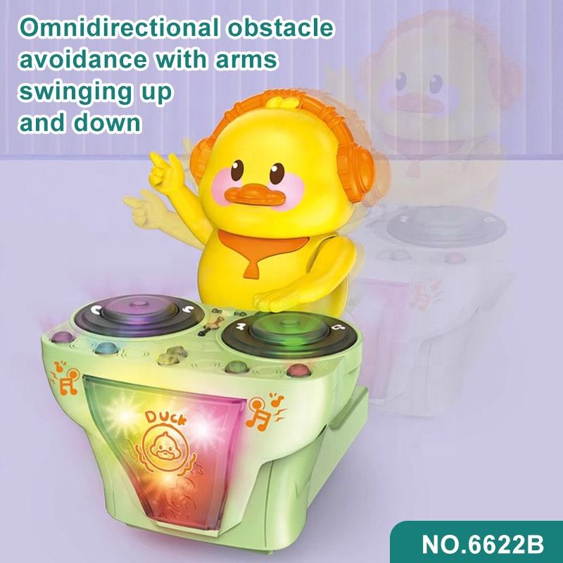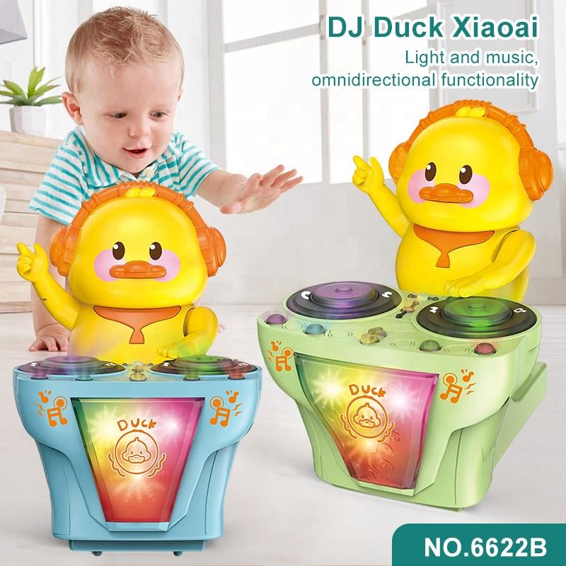 Custom Light Music Toy DJ Yellow Duck Toy Game Rotating Light Electric Dancing Dj Duck Toy for Kids