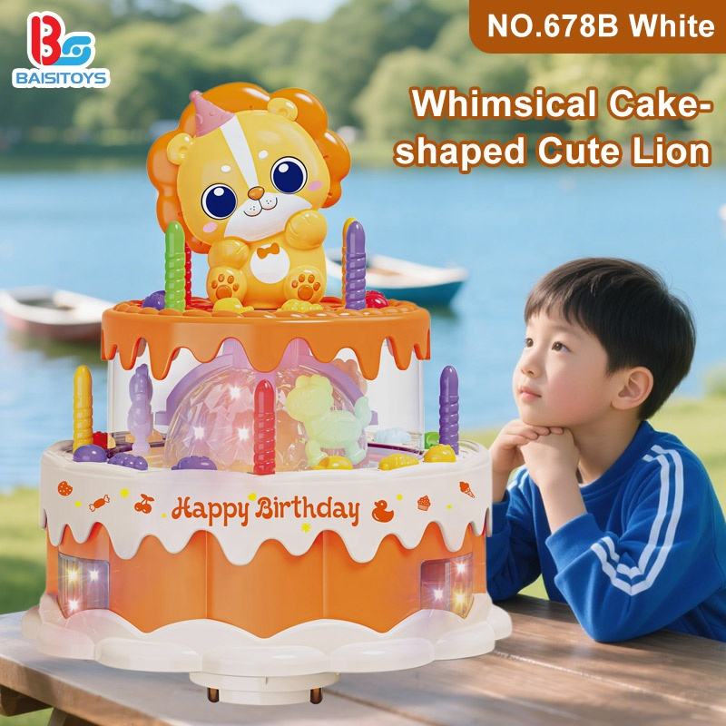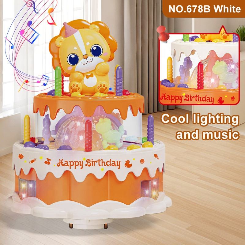 BABY Children Toys Universal Wheel Rotation Birthday Cake Baby Lion Electric Toys for Children Cake Music Light lion Toy
